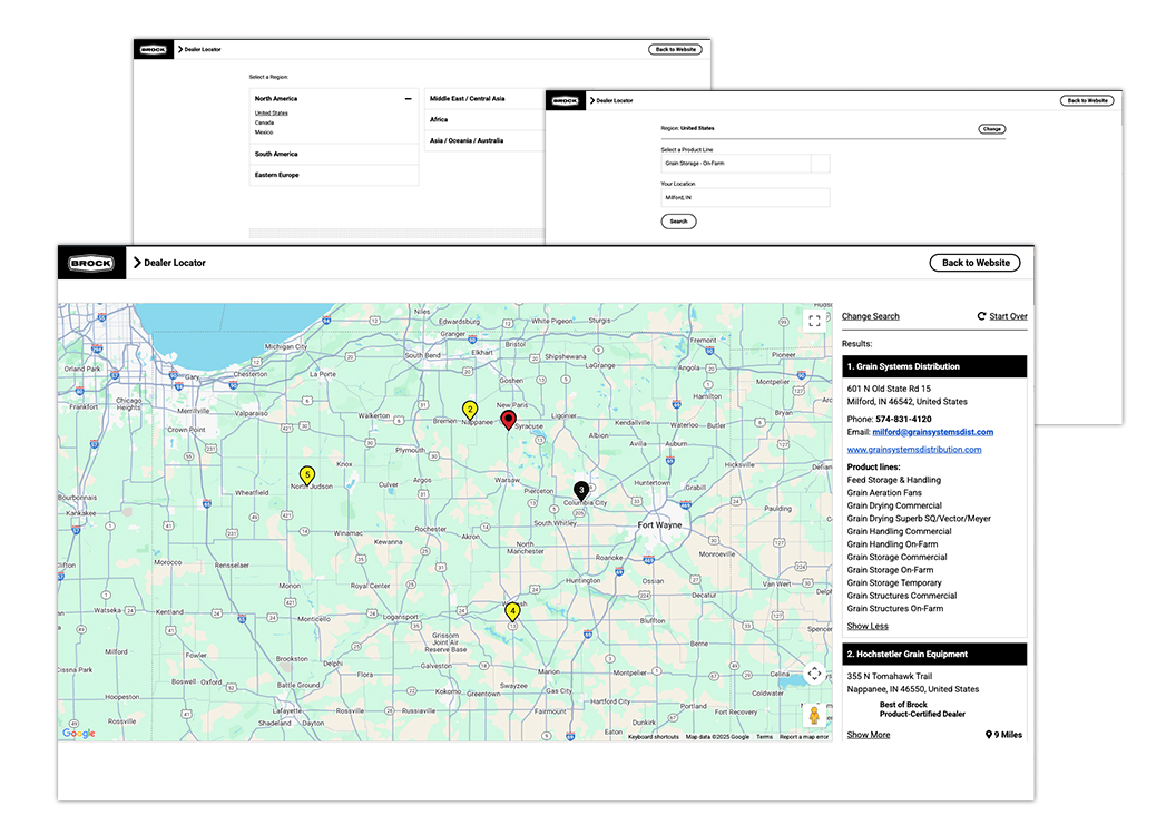 Brock Grain Systems is one of the most trusted names in grain storage and handling, known across the agriculture industry for durable equipment and dependable performance. Despite that reputation, however, Brock’s previous website didn’t reflect the strength of their brand or the full breadth of their product offering. Navigation was difficult, product details were limited, and the dealer locator lacked the functionality that customers expected.