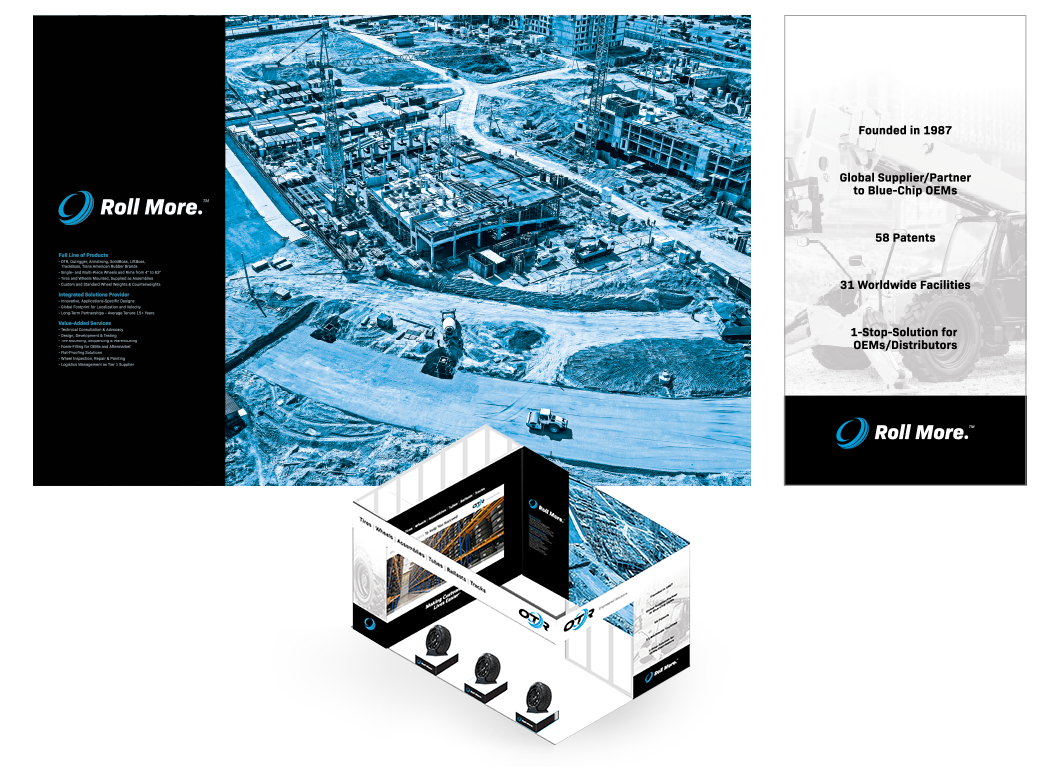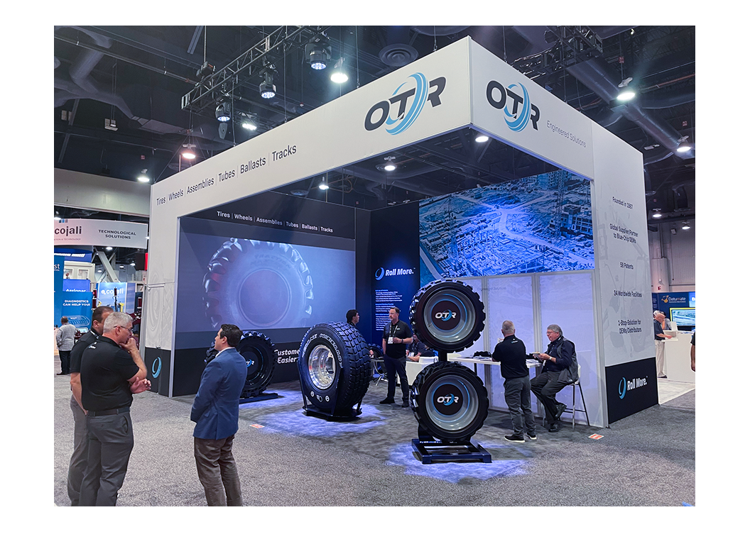 OTR Engineered Solutions is a global tire manufacturer and engineering partner serving OEM and aftermarket customers across several equipment markets. Their brand is known and trusted internationally, but their previous visual identity didn’t communicate the scale or innovative capabilities of the company. With a major trade show approaching, OTR faced a tight timeline to introduce their updated branding (including a new logo and refreshed literature), and needed a bold, cohesive booth experience that would effectively launch its new look.
