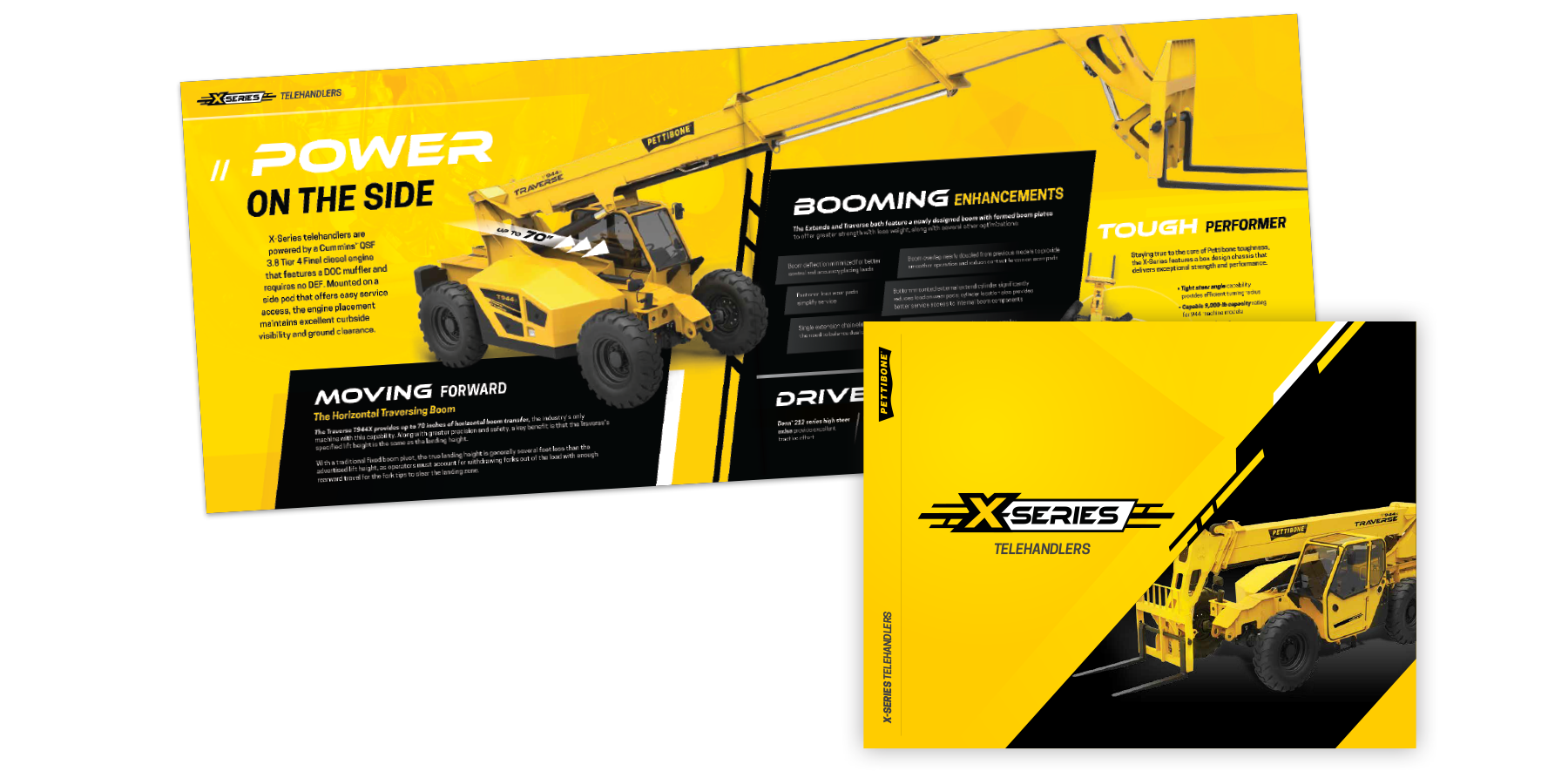 As the first prototype was being built, we worked with Pettibone to develop a new machine decal scheme and helped brainstorm the nomenclature for the new product line – the X-Series. We also developed a dedicated X-Series logo for various promotional purposes.