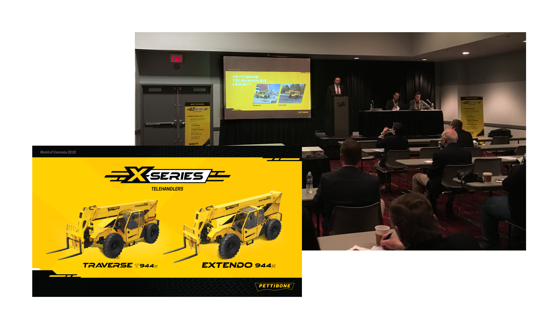 On the first day of World of Concrete, an afternoon press conference was conducted by representatives from Pettibone, at which time all X-Series details were finally revealed. Prior to the show, we had invited key trade publication editors to the event and worked with Pettibone to develop presentation content and graphics.