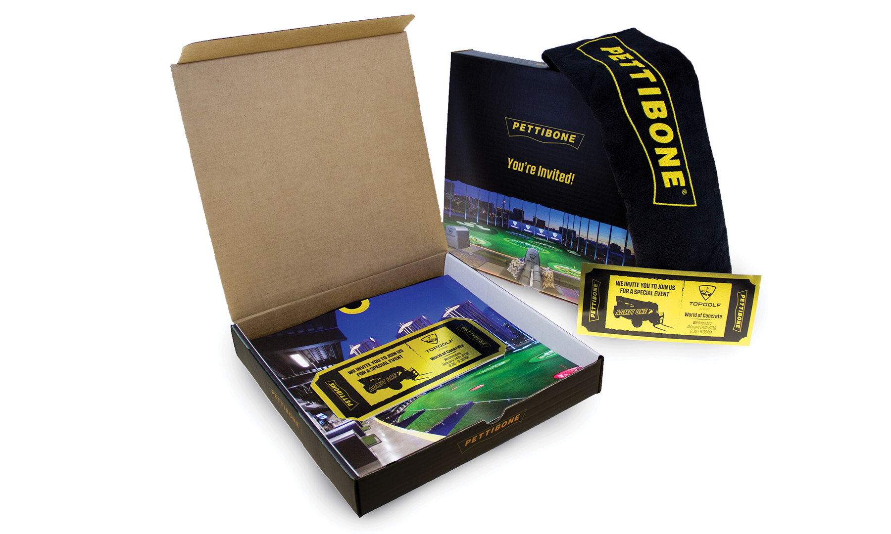 The invite consisted of Golden Tickets to the event, a letter from the vice president, and a golf towel, all packaged inside a custom-printed box. Reminder e-blasts followed the physical mailer.