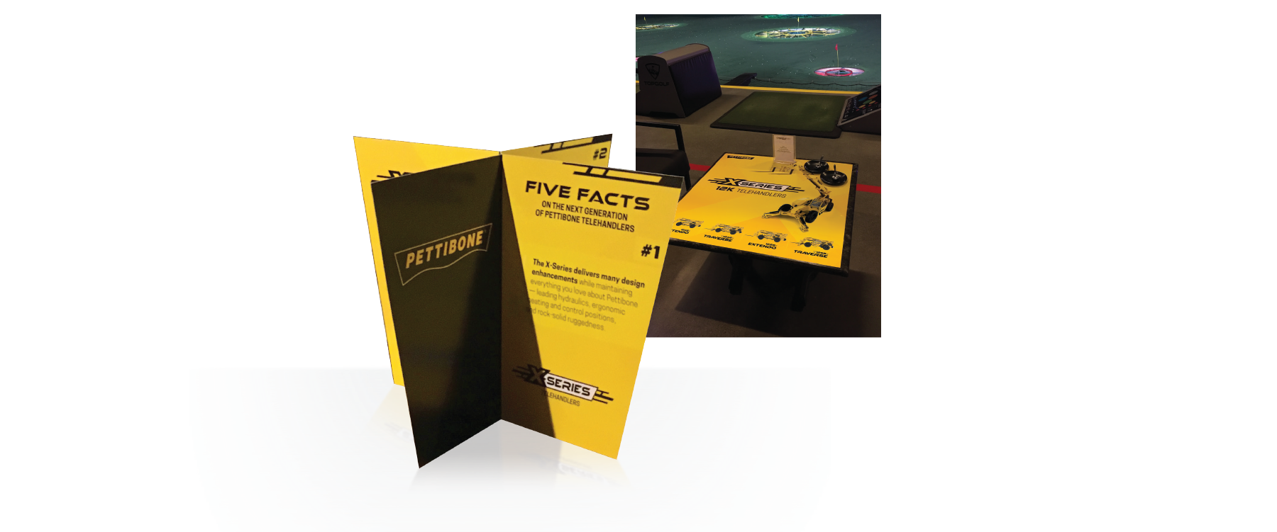 For the event itself, we created large peel-off “window clings” that would temporarily adhere to Topgolf’s granite tables in each golf bay. It proved to be a great method for enhancing Pettibone’s visibility at a tiny fraction of the cost it would have taken to buy advertising space on Topgolf’s video board.